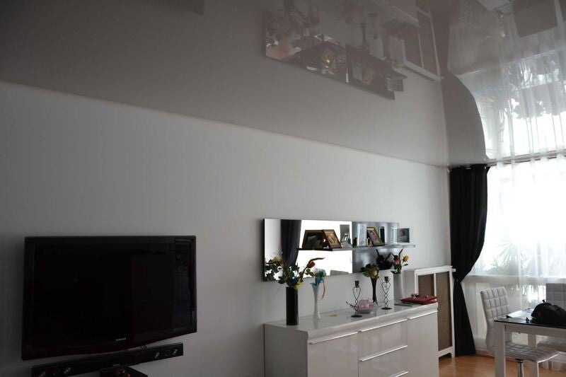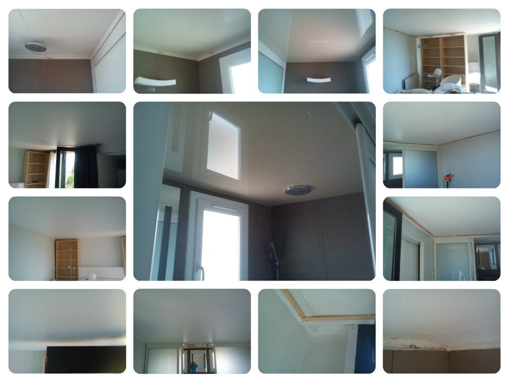 Plafond Toile tendue beige brillant Salle de bain et blanc mat Chambre - Biarritz